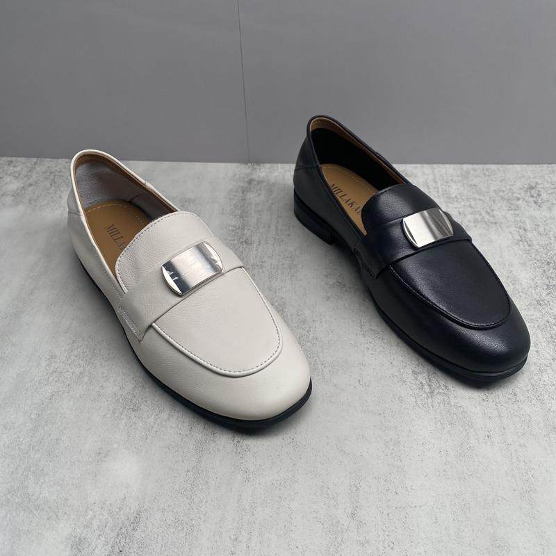 2025春季新款真皮女鞋英伦防滑软底低跟方跟圆头乐福鞋复古女单鞋
