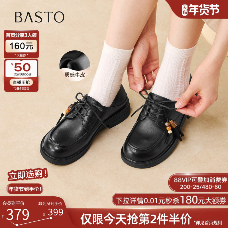 百思图2026春季商场新款休闲牛皮鞋厚底牛津鞋复古女单鞋W6811AM6