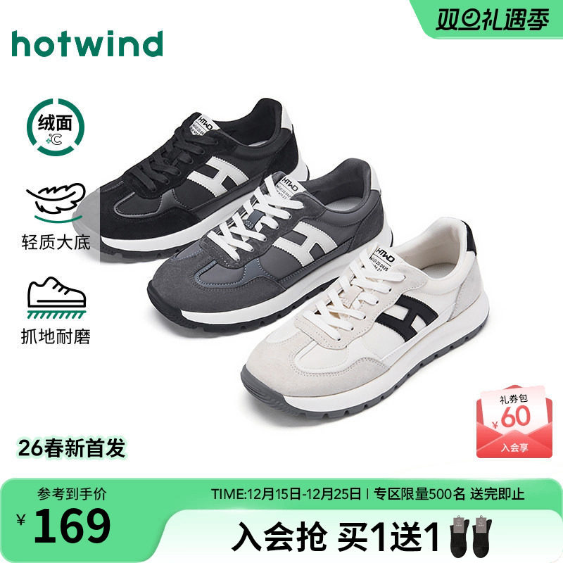 热风男鞋2026年春季新款男士时尚休闲鞋厚底户外鞋子运动慢跑鞋