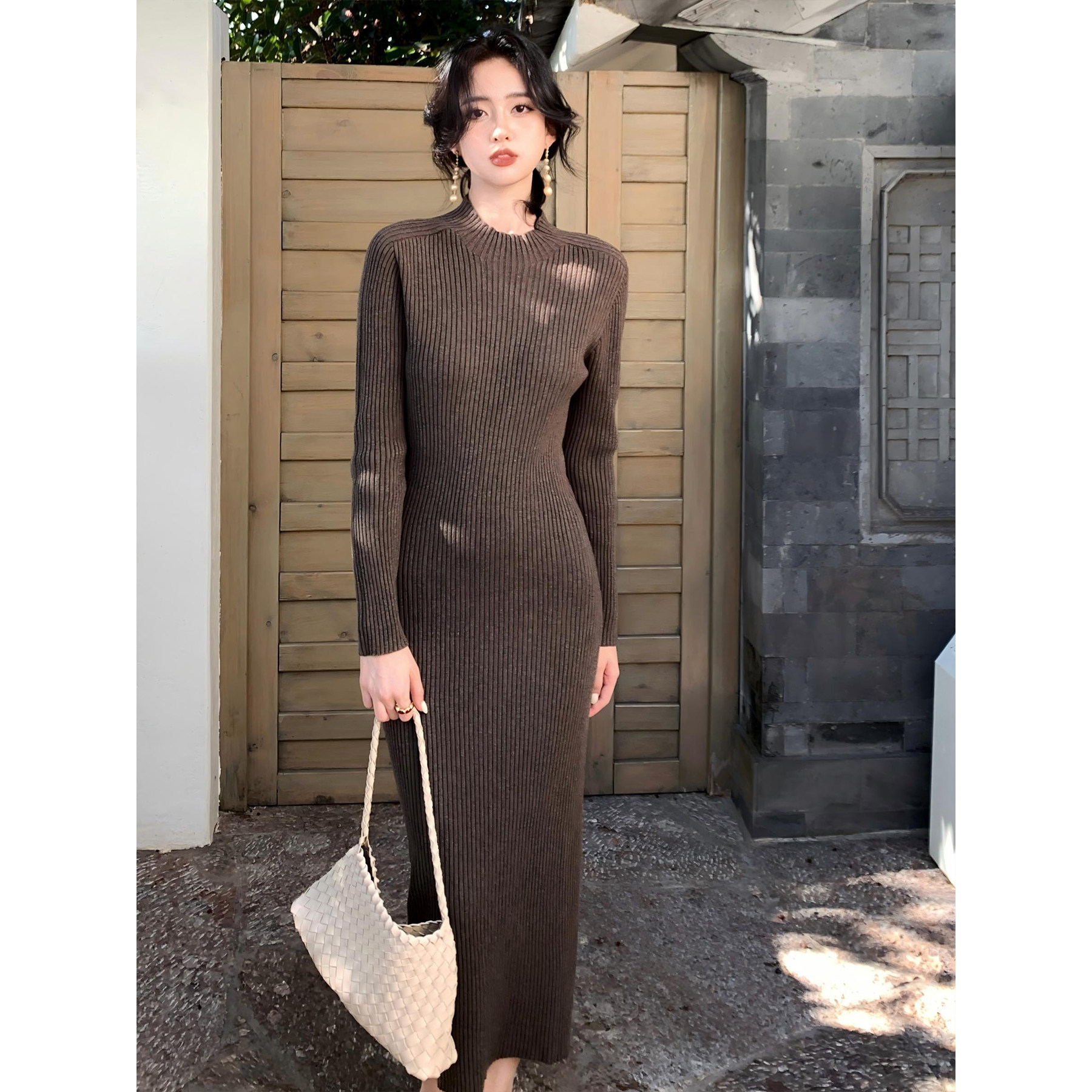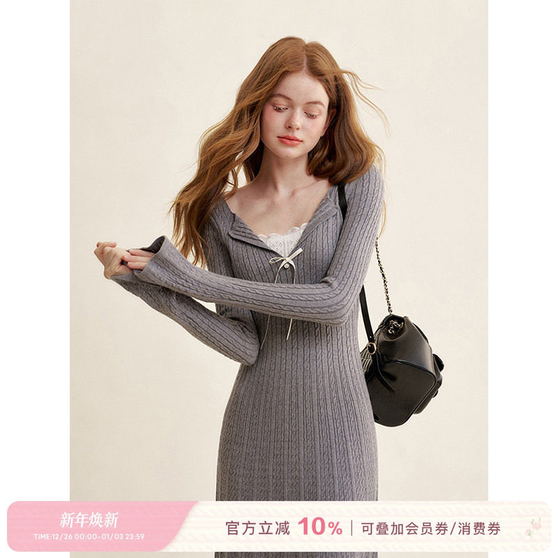 - 针织毛衣连衣裙长裙