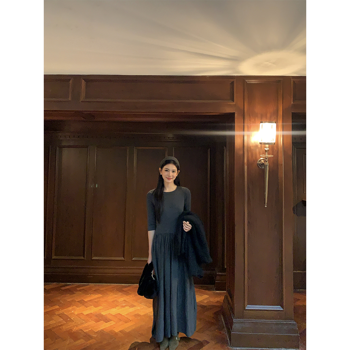 - 冬季连衣裙 中长款加绒