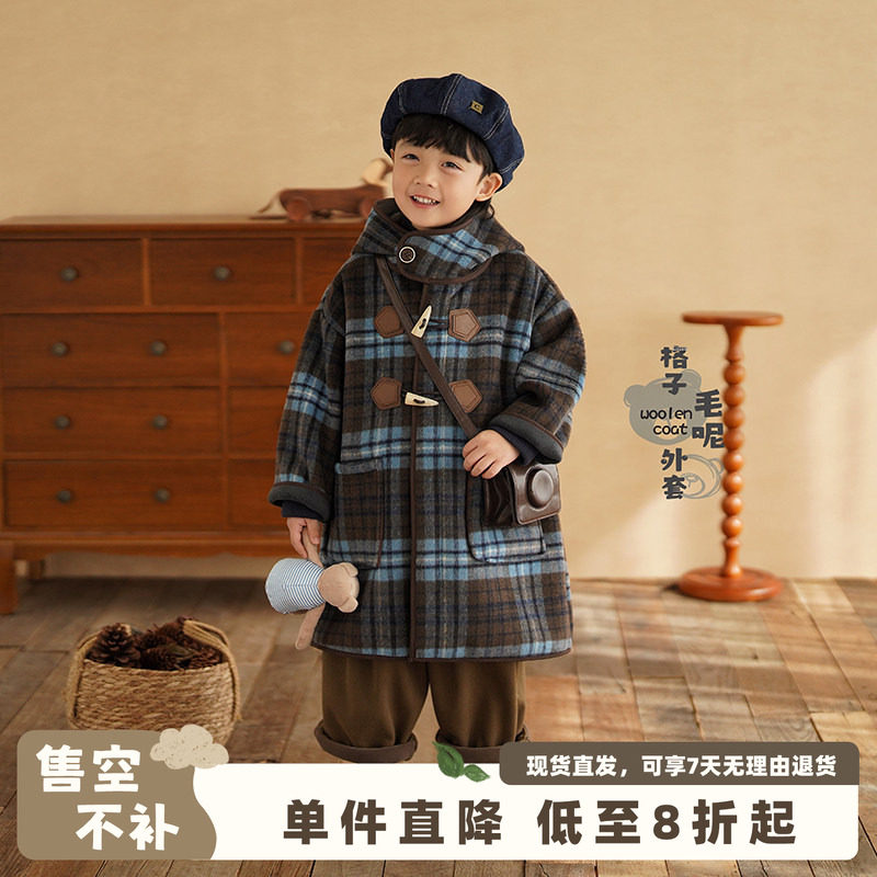 砚台家儿童加厚毛呢大衣冬季新款男童冬装厚外套宝宝长款保暖上衣