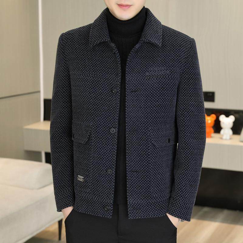 冬季新款中年男士羊毛呢大衣外套休闲中老年人加厚呢子夹克爸爸装
