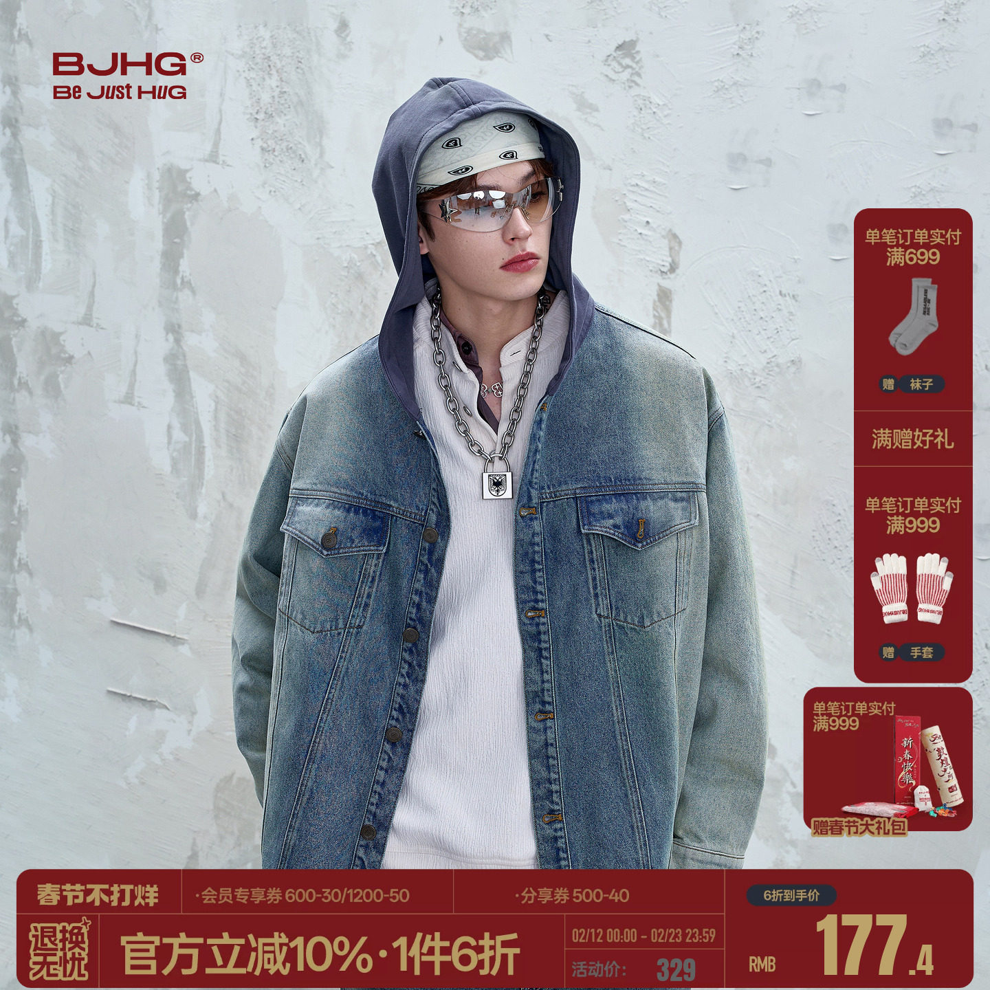 BJHG不计后果休闲牛仔夹克外套男秋冬2026新款潮牌设计感连帽夹克