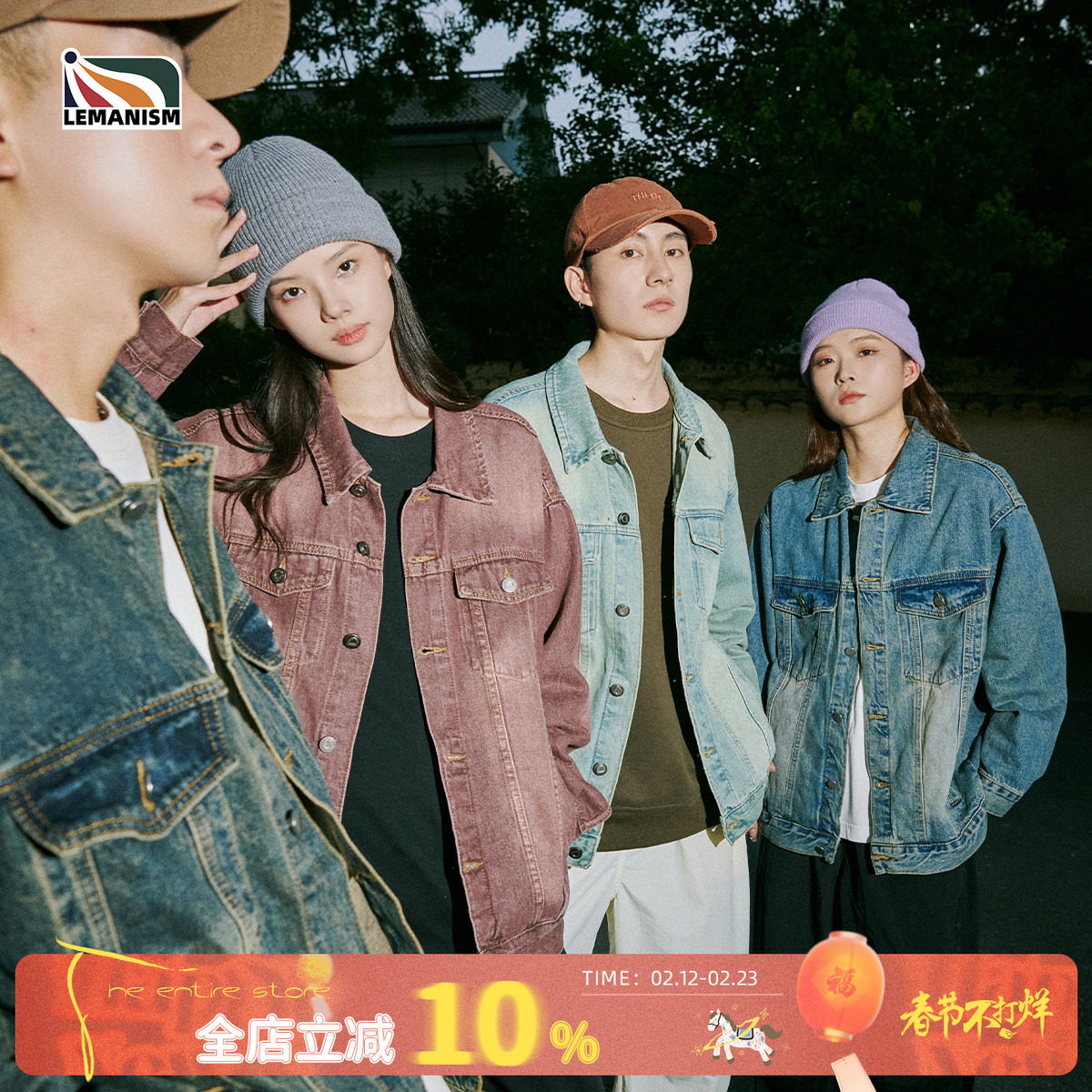 lemanism美式复古牛仔外套男女同款秋季翻领夹克情侣款牛仔衣潮牌