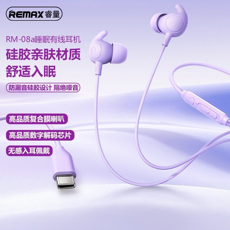 Remax入耳式手机线控耳机带麦Type-C接口硅胶耳帽有线睡眠耳机