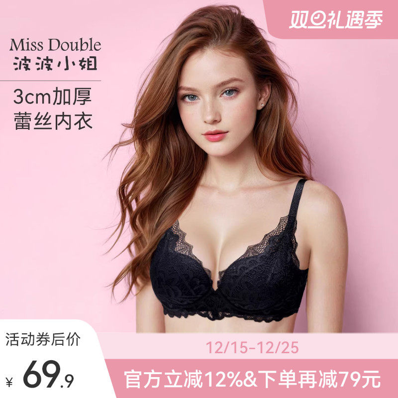 波波小姐蕾丝性感内衣女文胸聚拢加厚无钢圈防下垂收副乳小胸胸罩