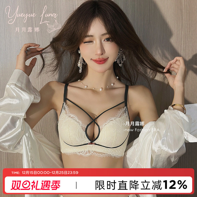 月月露娜 小胸聚拢内衣女加厚性感蕾丝文胸防下垂无钢圈胸罩套装
