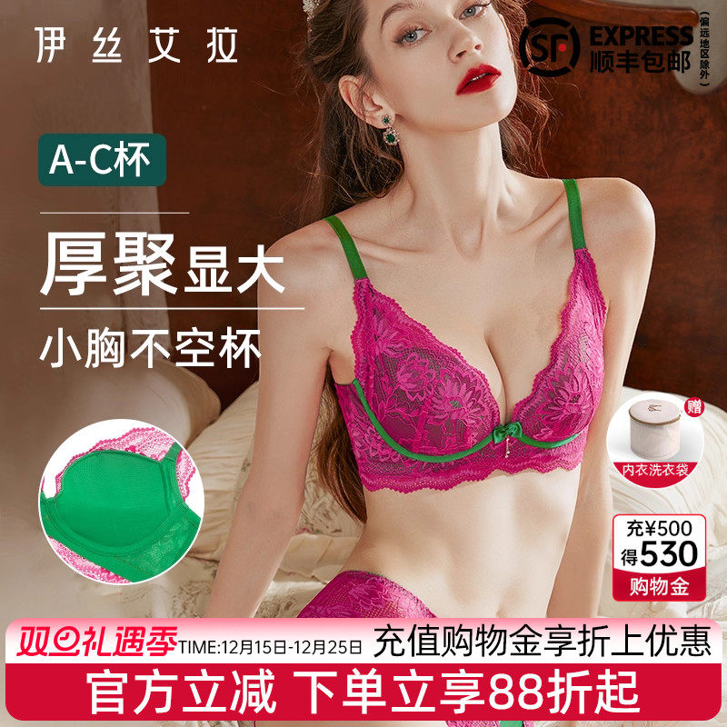 伊丝艾拉聚拢内衣女小胸显大加厚收副乳防下垂蕾丝性感无钢圈文胸