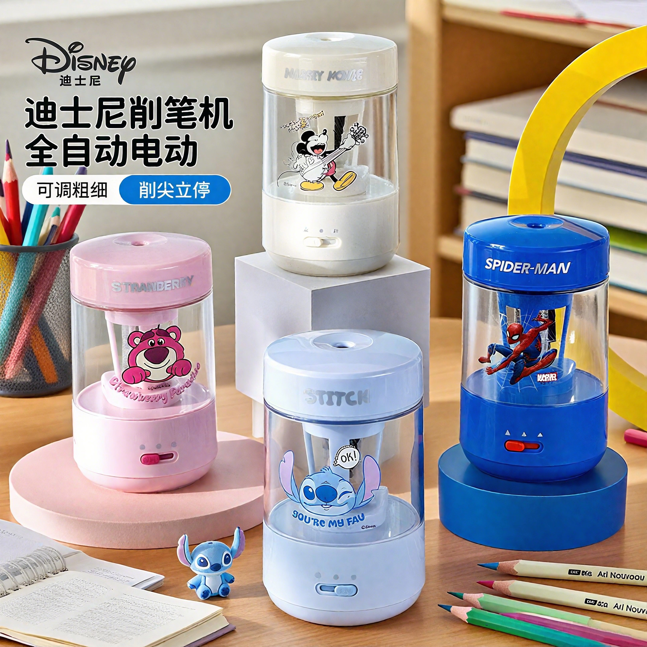 迪士尼全自动削笔机削笔器电动卷笔刀转笔刀小学生专用铅笔刀幼儿园儿童免手扶男女孩充电款旋笔刨笔机绞笔刀