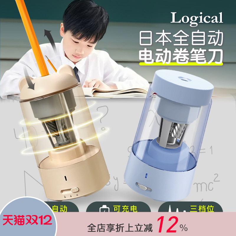 Logical逻辑全自动电动卷笔刀锂电池充电三档可调大容量笔屑槽可替换刀架男女学生可爱造型TYPE-C充电口