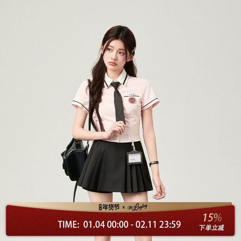 花铃太太泰式校服套装jk衬衫学院风衬衣女生短袖夏季女毕业照穿搭