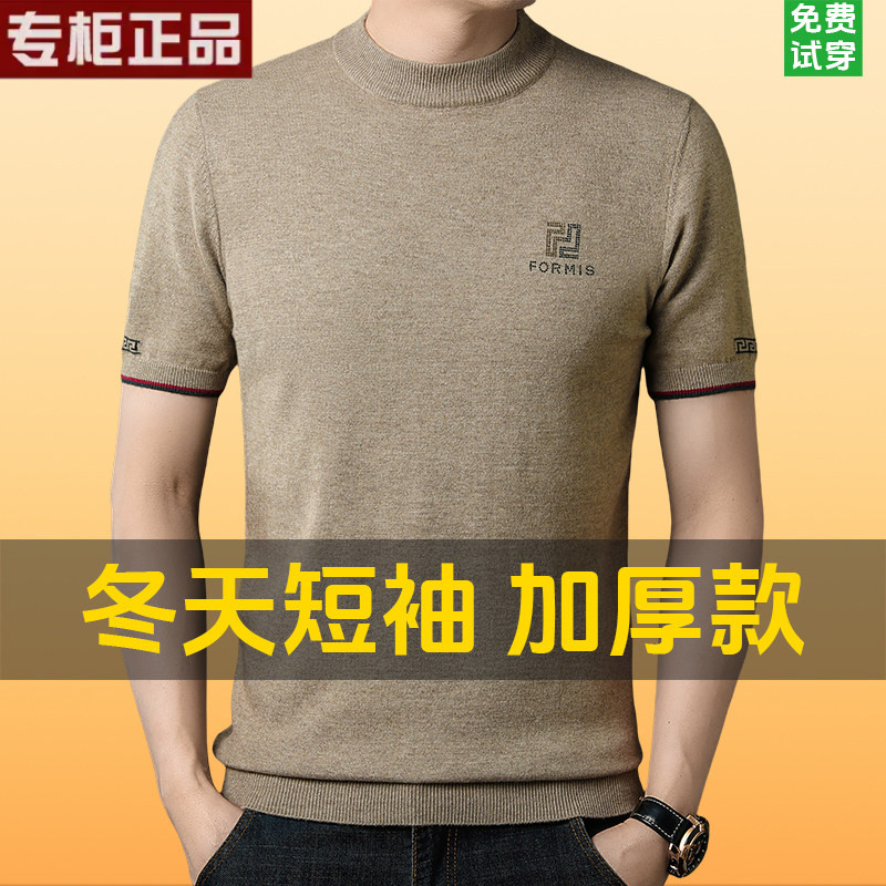 鄂尔多斯市新款秋冬季短袖羊毛衫男半高领烫钻羊绒针织衫半袖毛衣