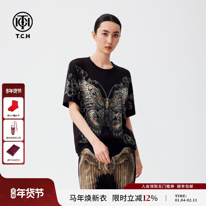 TCH潮牌烫钻短袖T恤男女个性时尚商场同款秋季新款T72C106026
