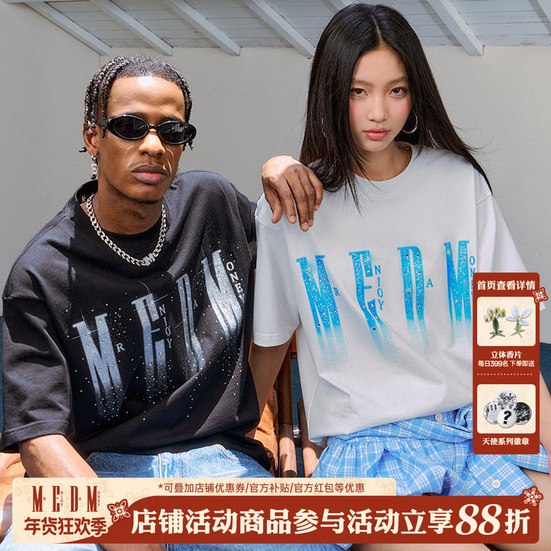 MEDM25SSLOGO闪光烫钻短袖男高级感痞帅潮牌夏季T恤女士复古体恤