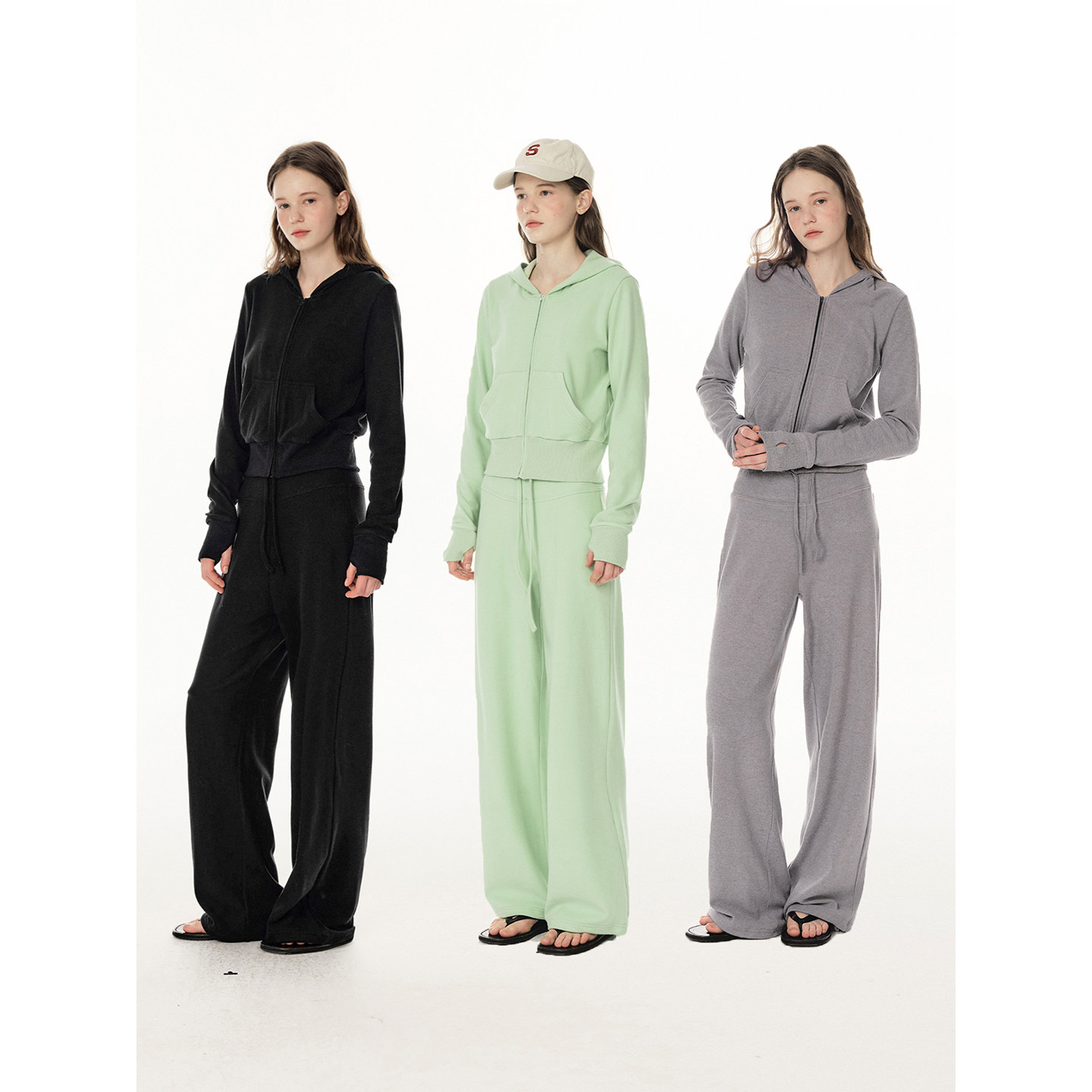 UNRETRO 首发时尚套装 绿色运动拉链卫衣女+抽绳直筒休闲裤两件套
