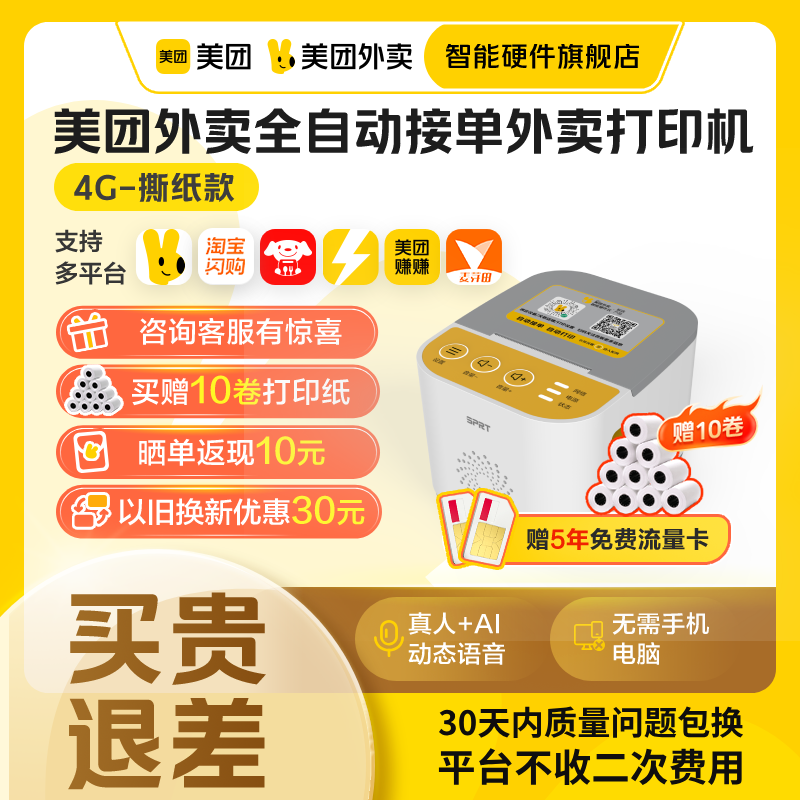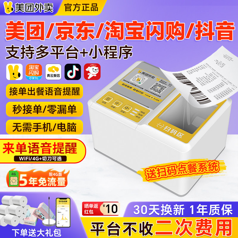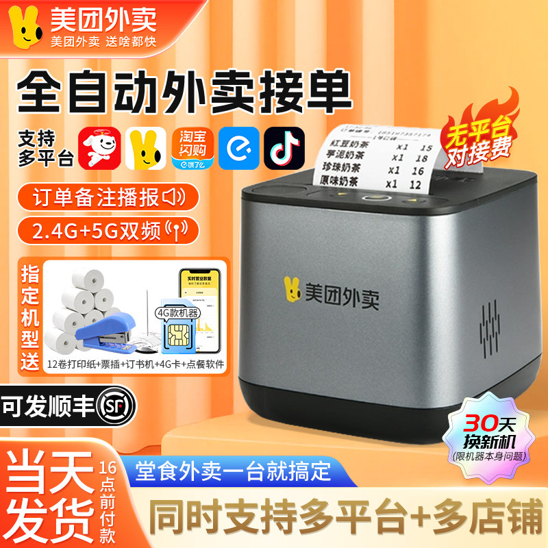 【美团官方】美团外卖打印机自动接单机饿了么打印机热敏打印机wifi4g外卖订单小票打印机美团外卖智能硬件