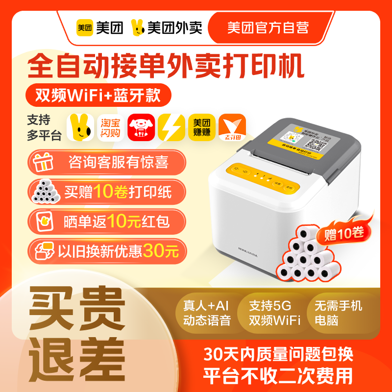 【美团官方自营】美团外卖打印机自动接单美团打印机饿了么京东外卖打单机票据热敏打印机小票机外卖专用