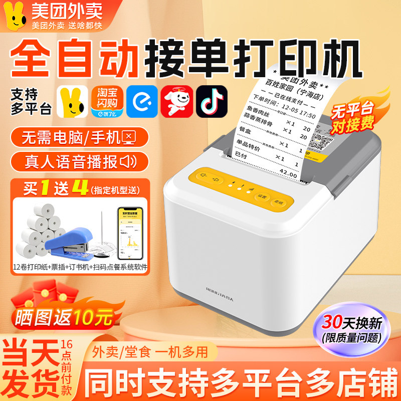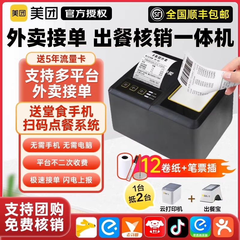 美团外卖打印机云打印出餐一体机淘宝闪购饿了么京东全自动接单机
