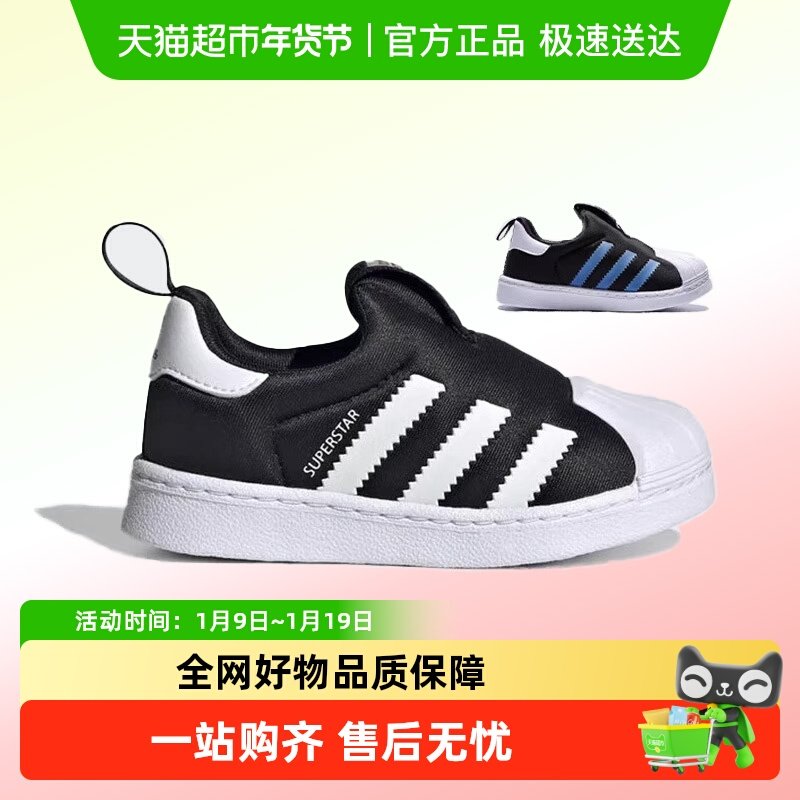 阿迪达斯三叶草童鞋25秋新经典魔术贴贝壳头运动板鞋小白鞋JS2473