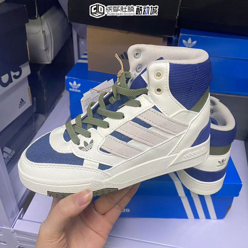 阿迪达斯三叶草童鞋DROP STEP小童大童高帮保暖休闲板鞋 IH3285