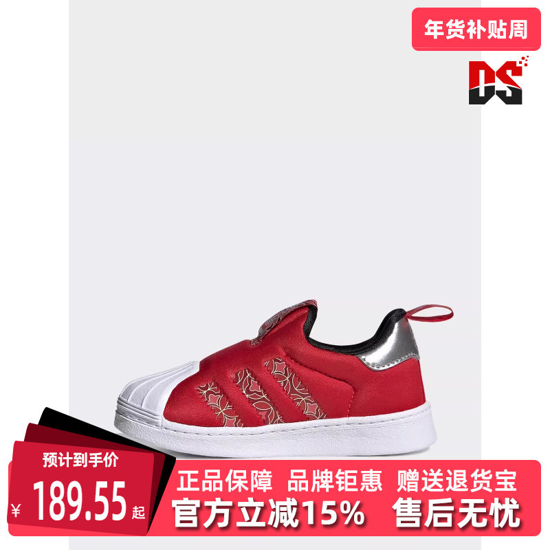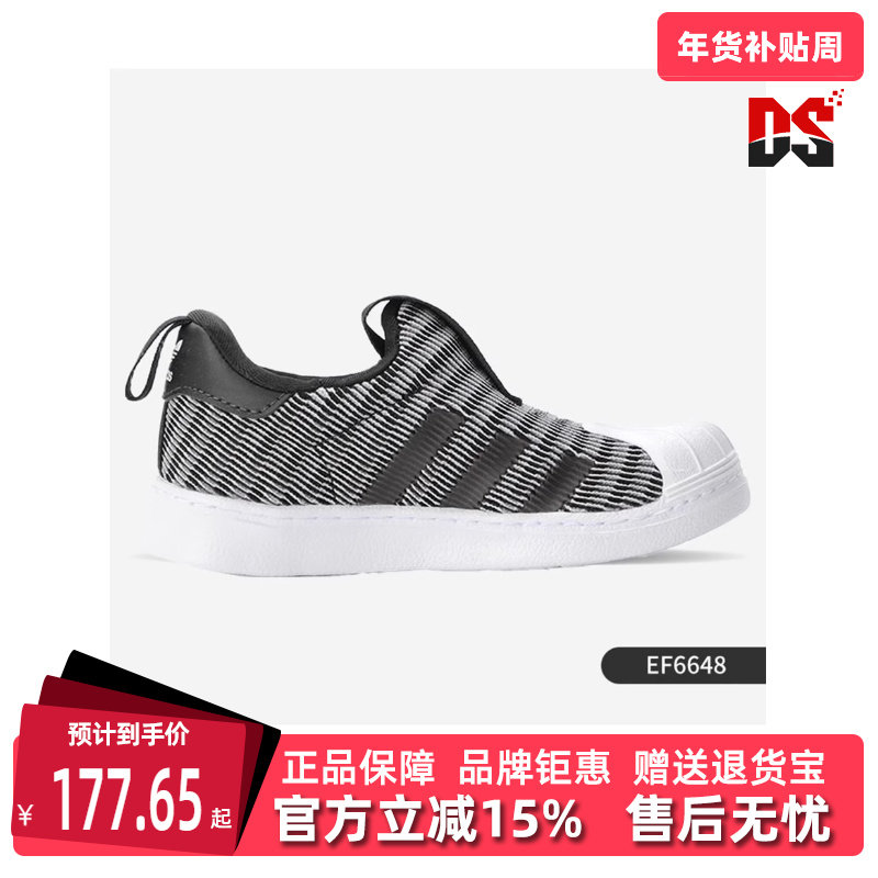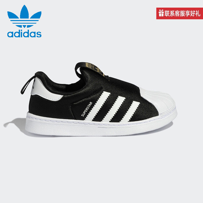 阿迪达斯童鞋三叶草经典金标贝壳头百搭一脚蹬板鞋运动鞋GX3231