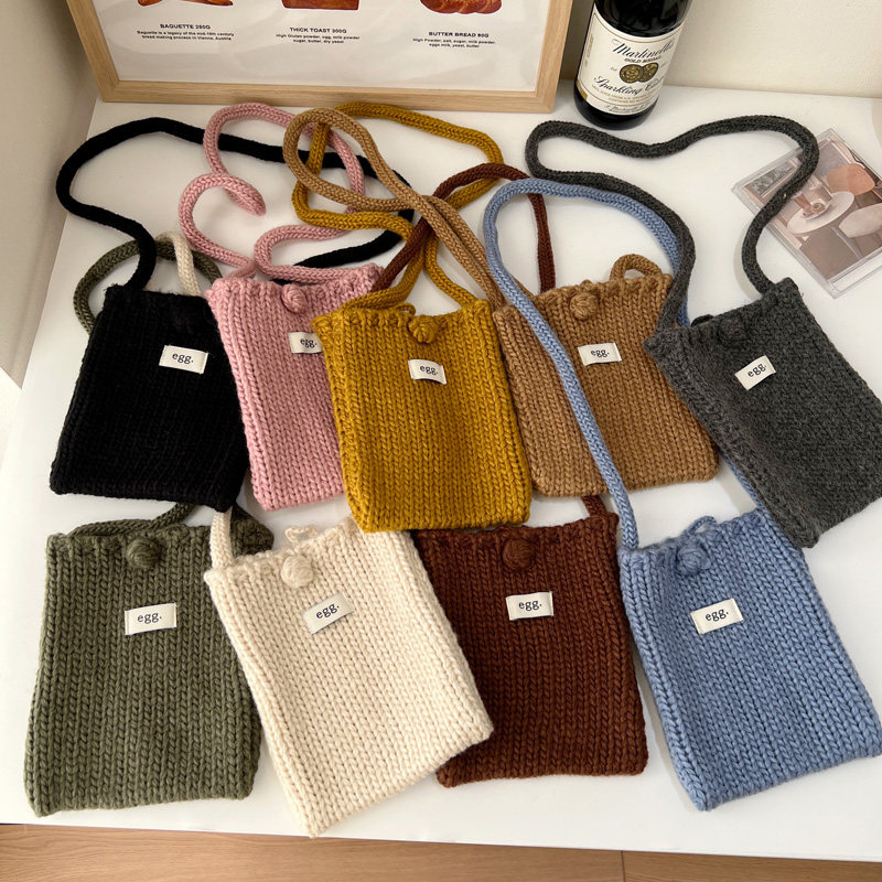 韩国egg针织迷你斜挎包手机包小巧便携纯色毛线编织小包包零钱包