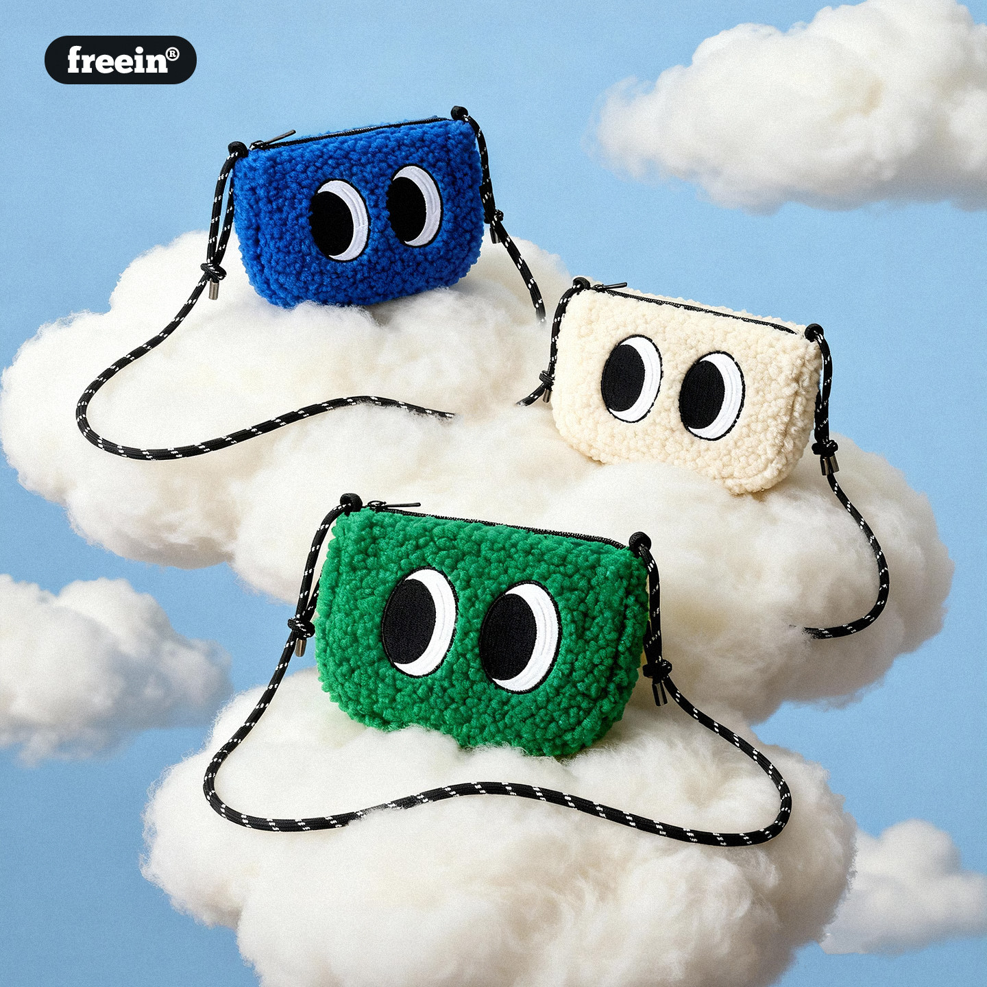 FREEIN原创轻便可爱小饭团毛绒耳机包迷你斜挎包少女零钱手机包