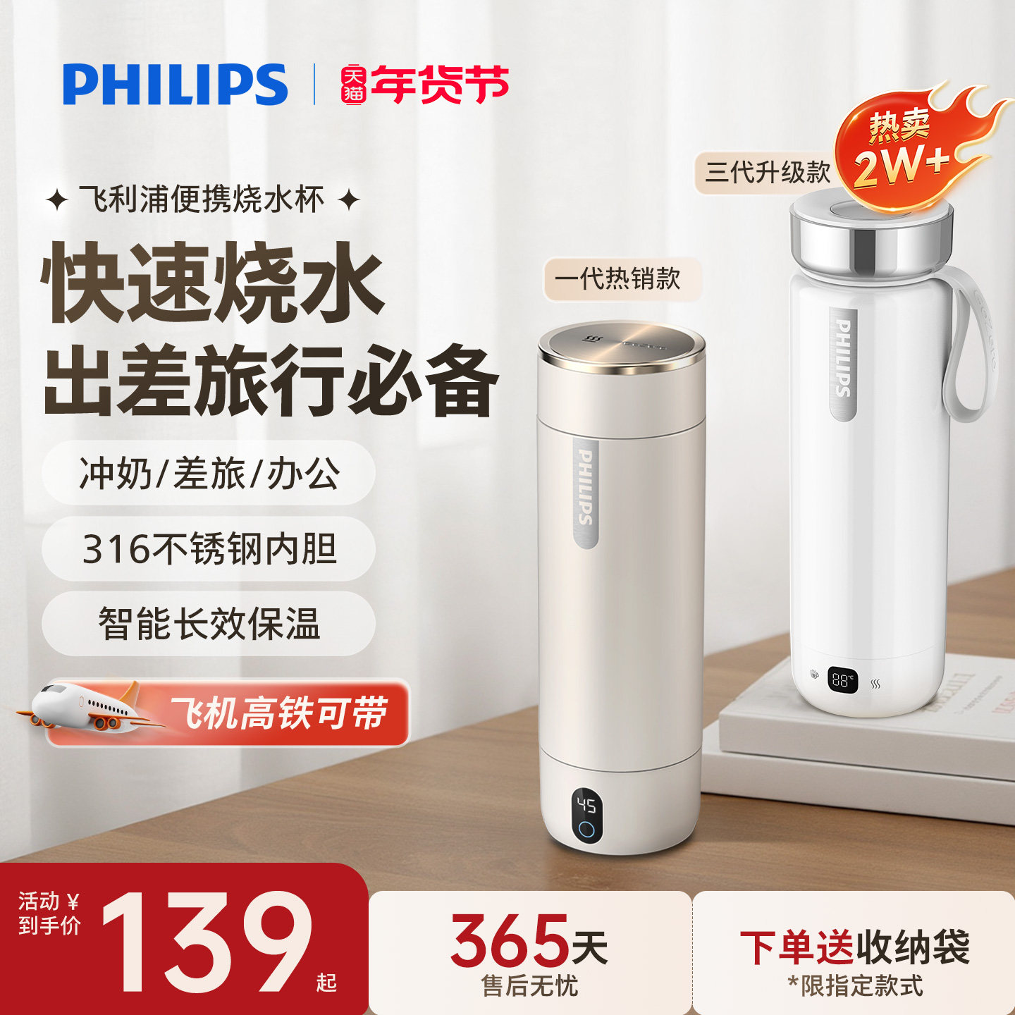 飞利浦烧水杯便携式小型电热杯316烧水壶保温杯出差旅行加热水杯