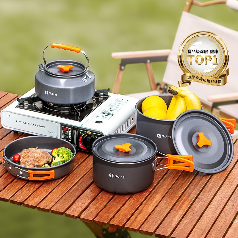 拓村户外锅具露营炊具烧水壶野营野外炉具套锅煮锅卡式炉专用套装