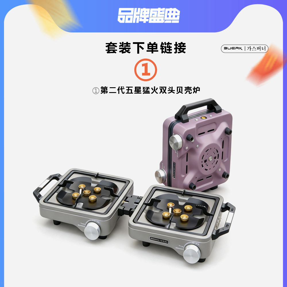 布比克BUERK五星猛火双头贝壳炉便携折叠分体卡式炉户外露营炉具
