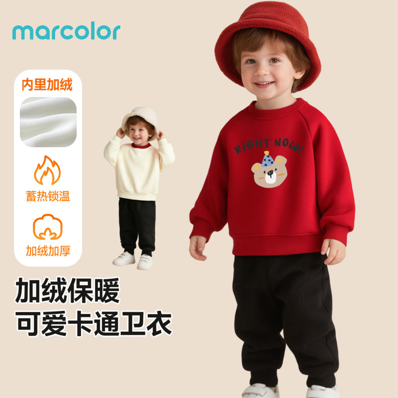 马卡乐男童红色卫衣套装儿童马年新款加绒加厚新年男孩过年衣服宝
