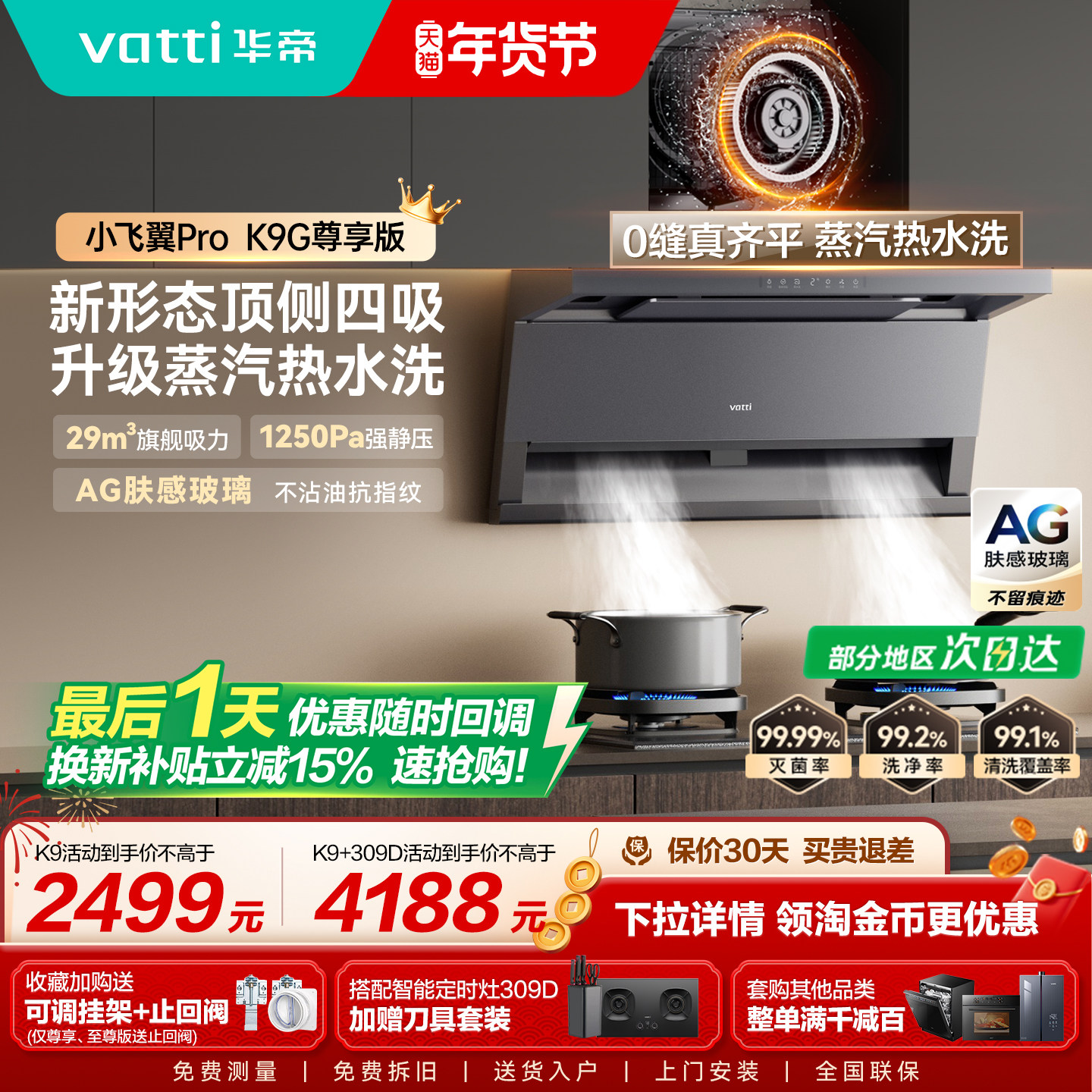 [小飞翼Pro]华帝油烟机K9/K9G顶侧双吸烟机自动洗家用厨房抽烟机