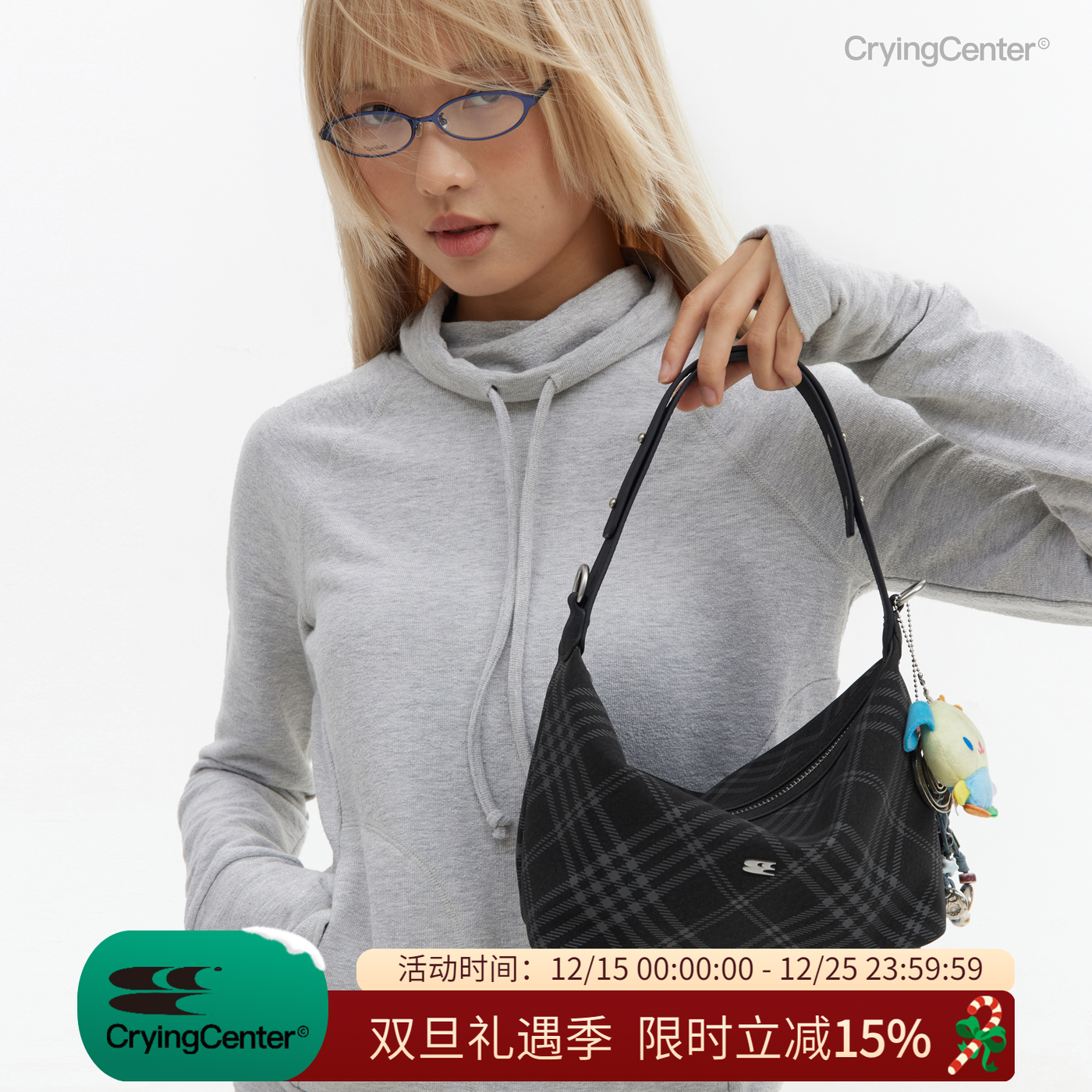 CryingCenter 黑色仿毛毡格纹手提斜挎包 哭喊中心
