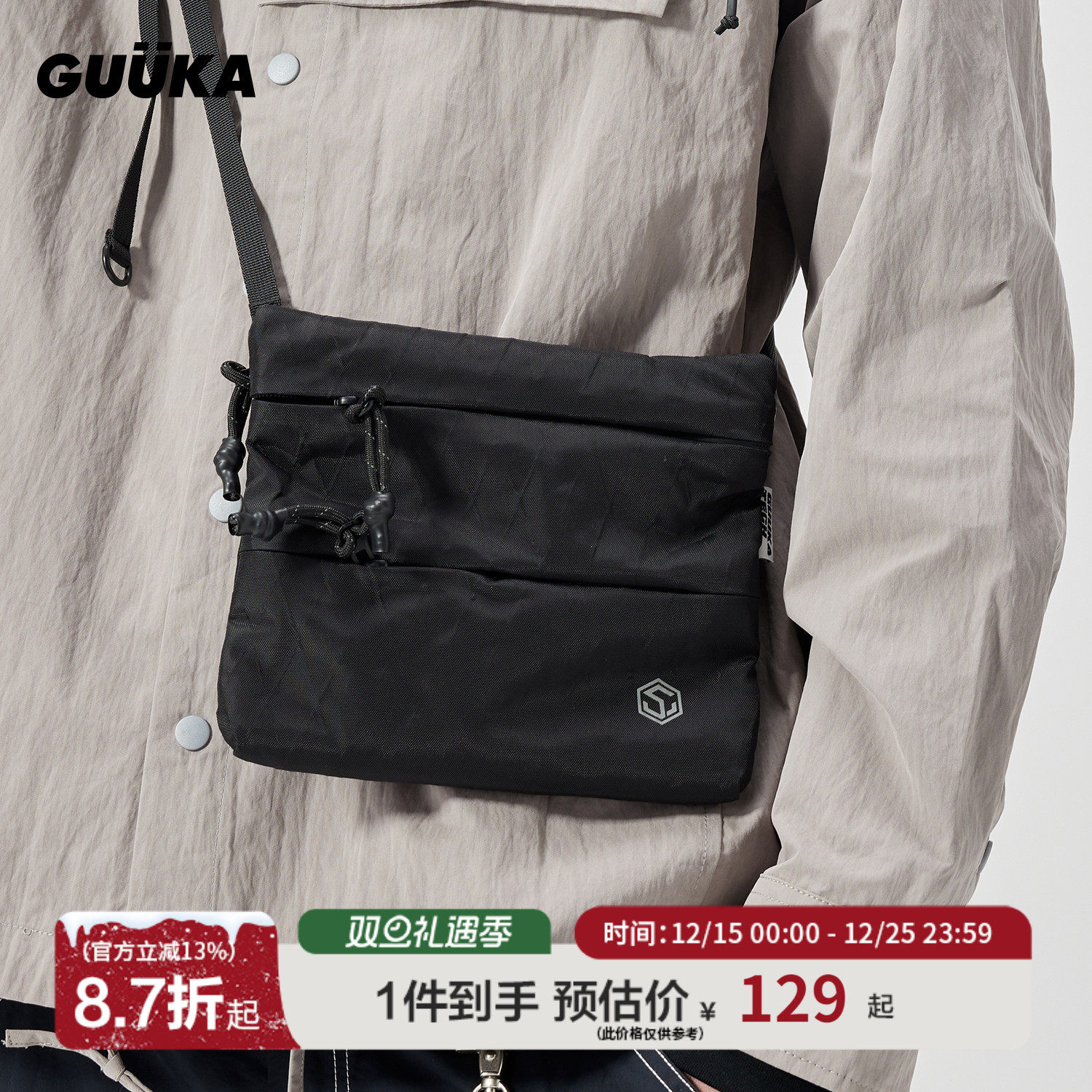 GUUKA山系户外黑色斜挎包男款小包包 纹理感单肩包女防泼水手机包