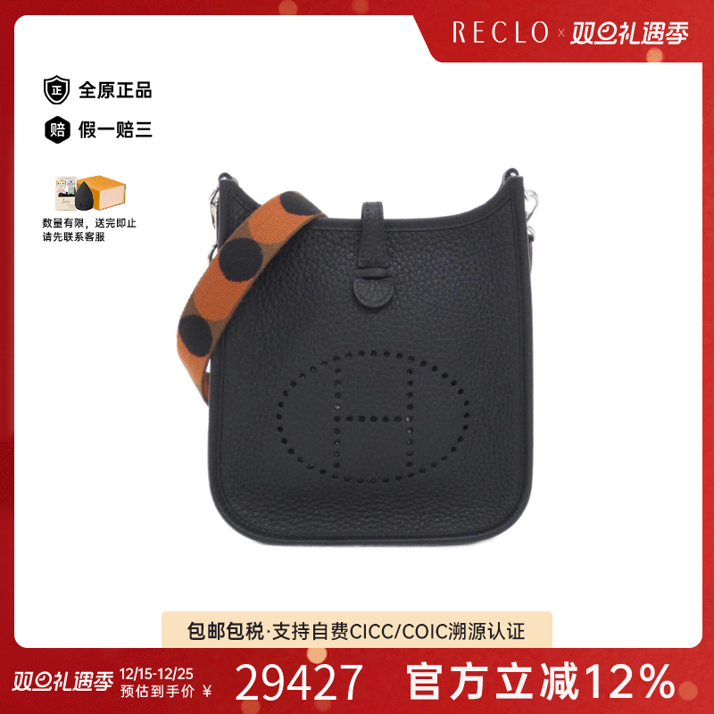 中古Hermes爱马仕女包A级95新Evelyn Amazon牛皮黑色斜挎包复古