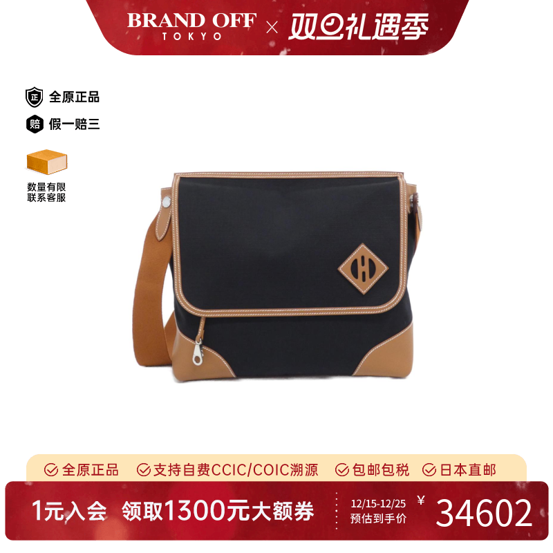 中古Hermes爱马仕男包A级95新Slicked Back Messenger黑色斜挎包