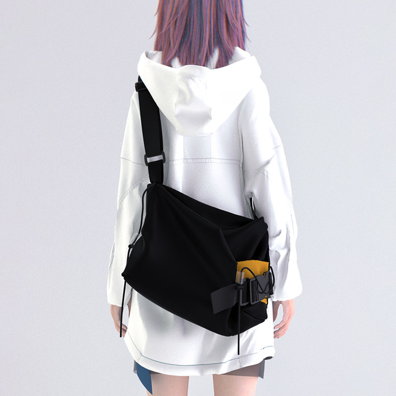 YONAIGA+ 原创潮牌INS黑色斜挎包尼龙学生书包背饺子包包单肩男女