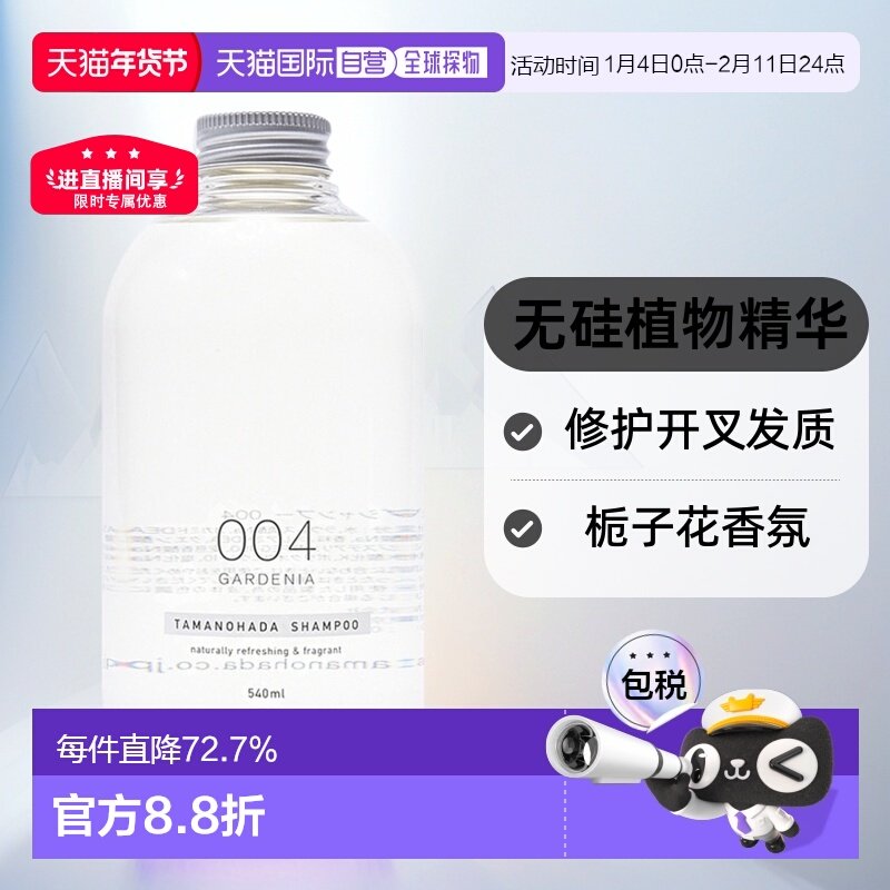 日本直邮TAMANOHADA 玉肌无硅植物精华洗发水004 栀子花香 540ml