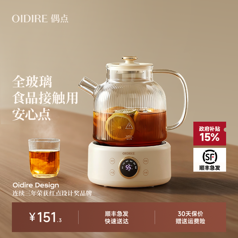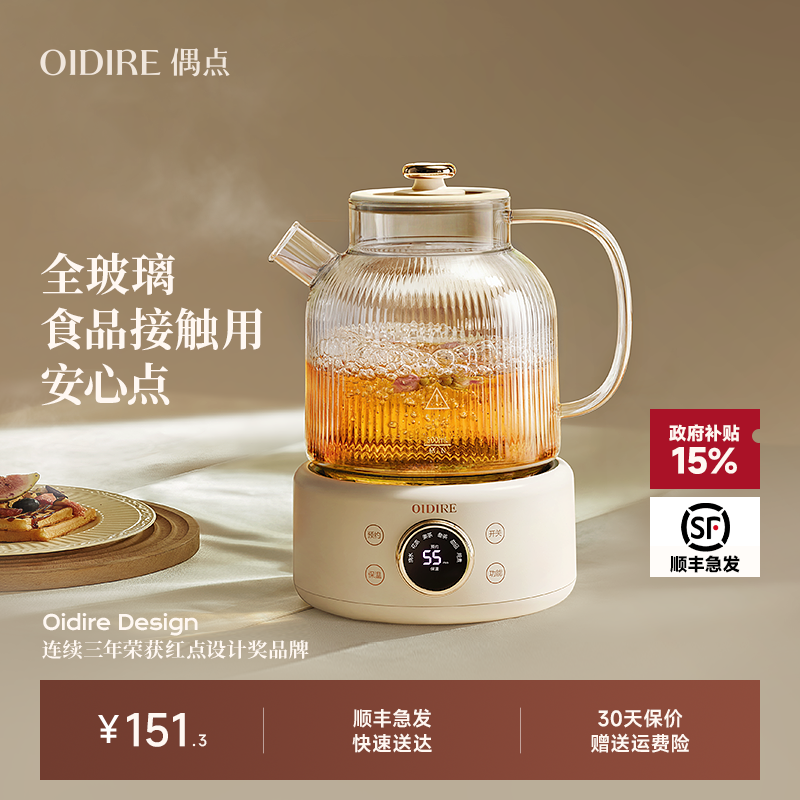 OIDIRE偶点全玻璃养生壶纯玻璃煮茶小型办公室烧水壶恒温电热水壶
