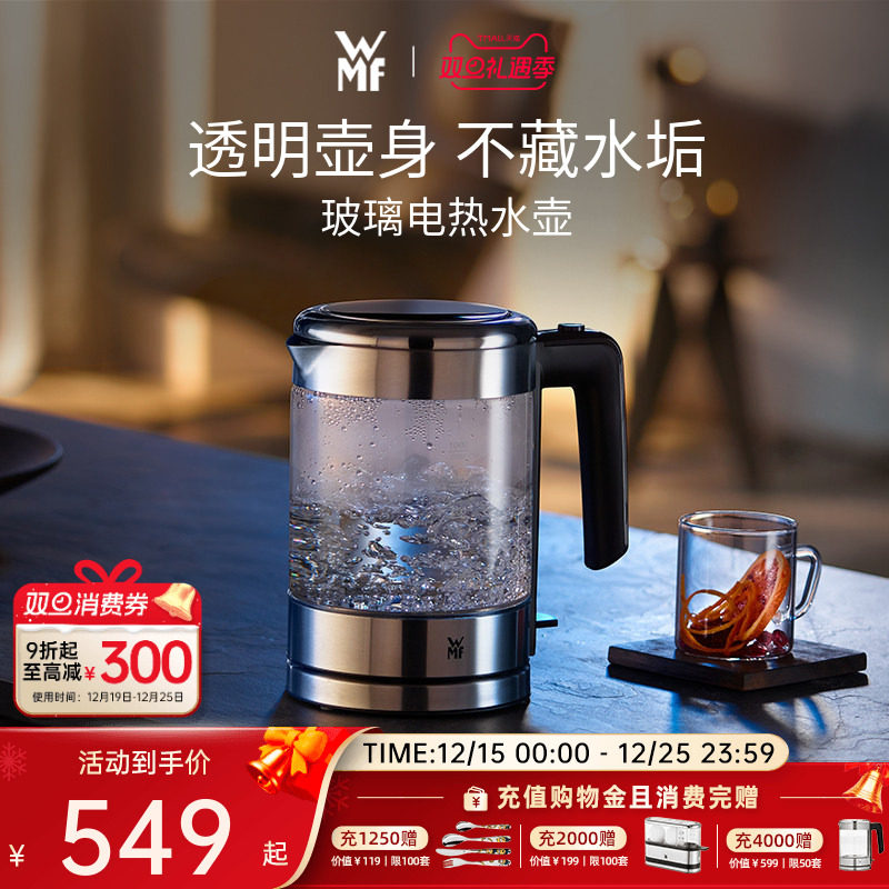 德国WMF福腾宝电茶壶家用防热防烫玻璃电热水壶烧水壶煮茶烧水壶