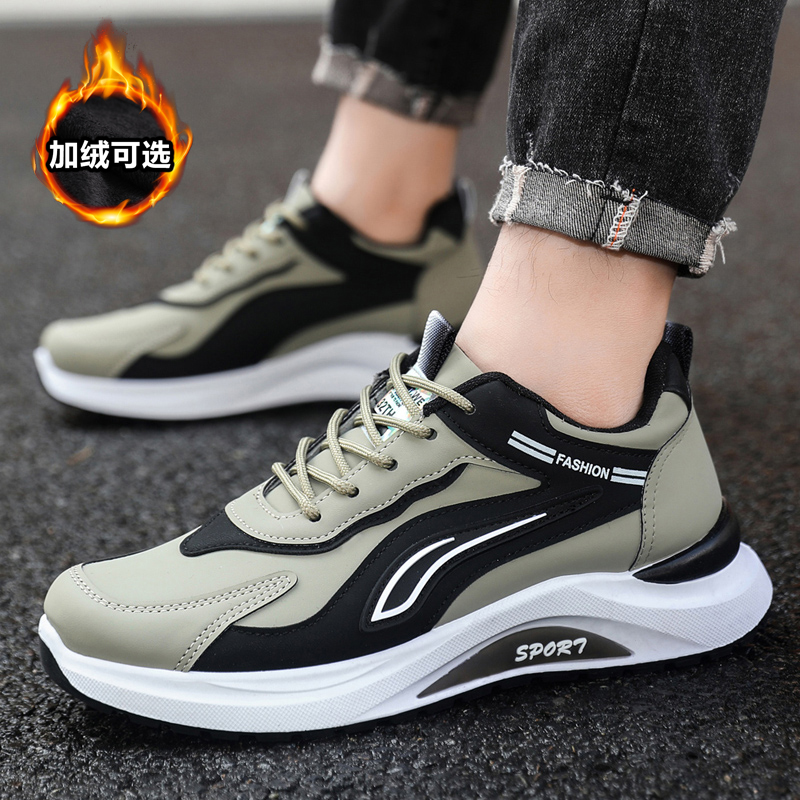 男鞋防水防滑鞋潮鞋秋冬季新款休闲鞋软底跑步鞋黑色皮面运动鞋男