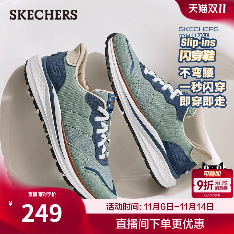 闪穿鞋斯凯奇|2025秋冬新款男款脚宽脚胖一脚蹬休闲鞋厚底跑步鞋