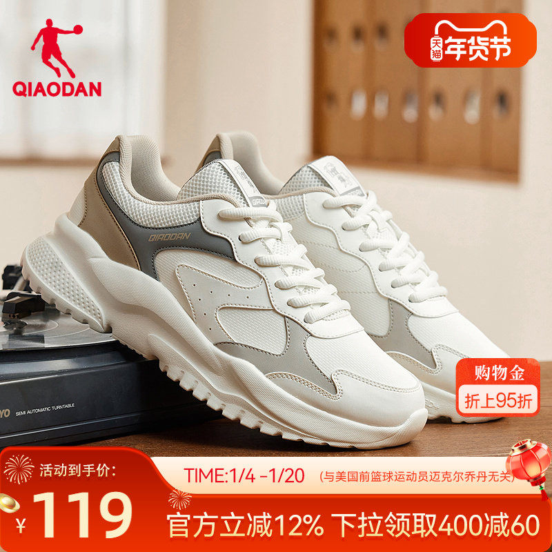 乔丹小千禧休闲鞋男跑鞋2025冬季轻便老爹鞋厚底皮面防水运动鞋子
