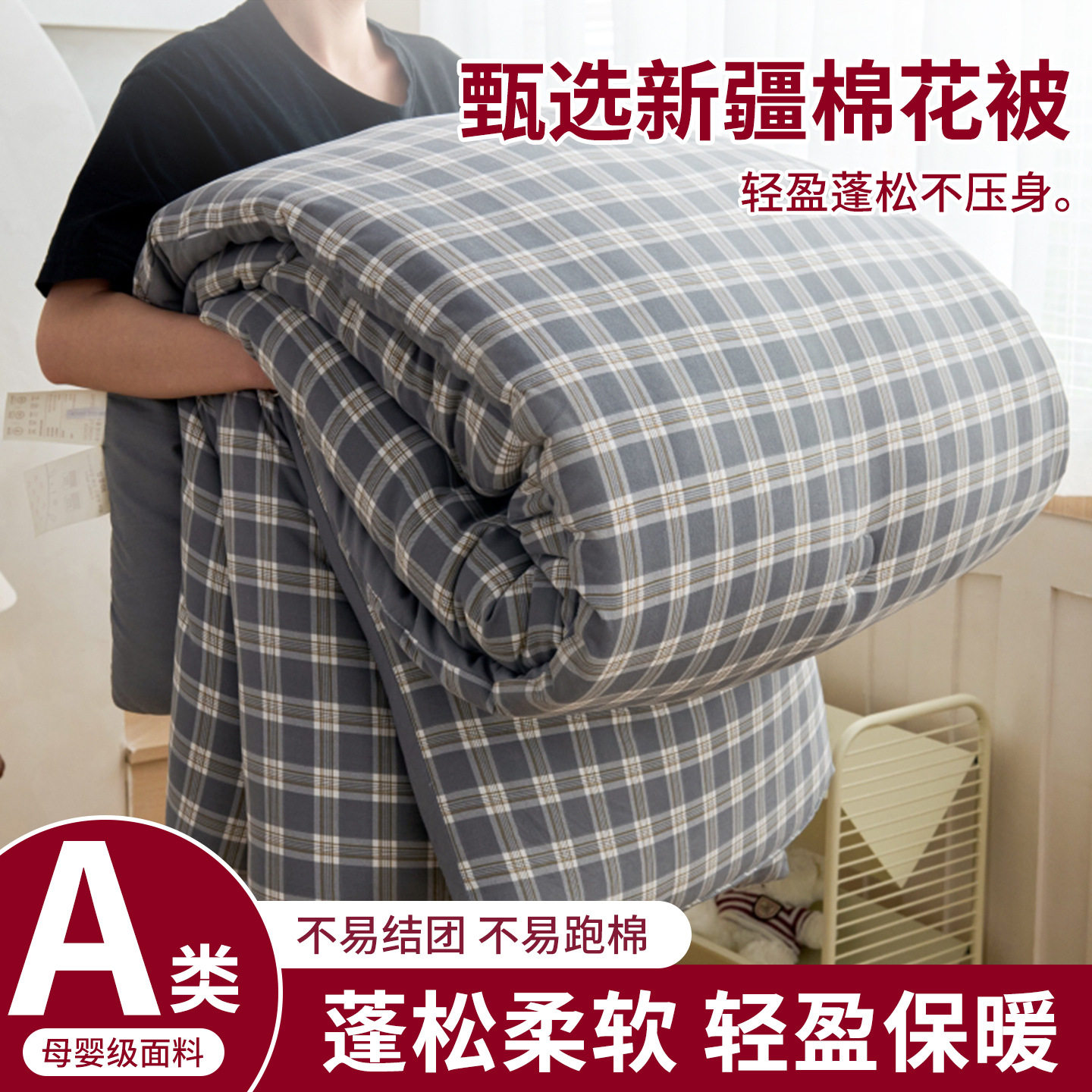 A类新疆棉花被子棉被芯1.5x2米春秋被褥宿舍单人可拆洗棉絮四季被