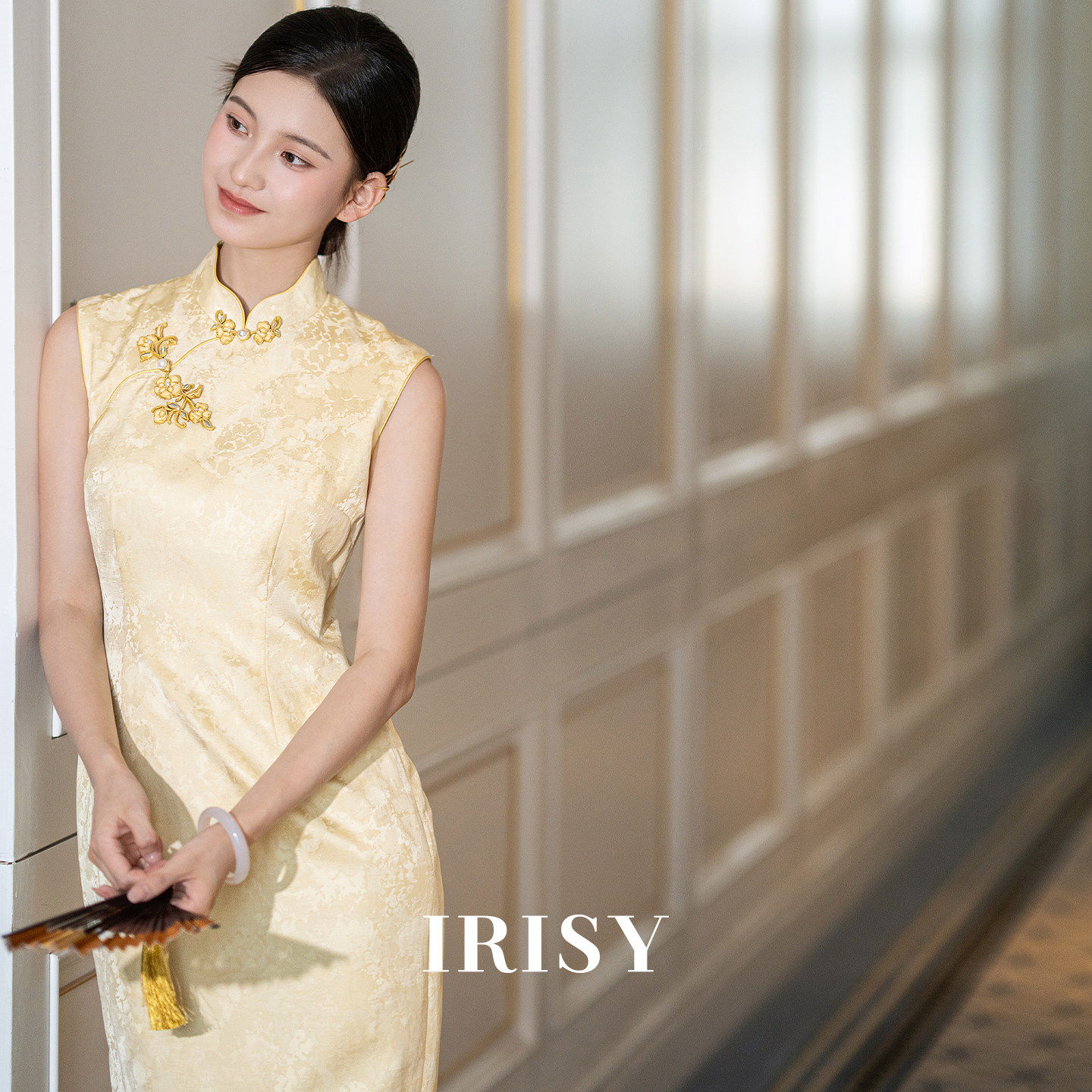 IRISY「采苓」黄色盘扣无袖旗袍女夏季气质订婚礼服新中式敬酒服