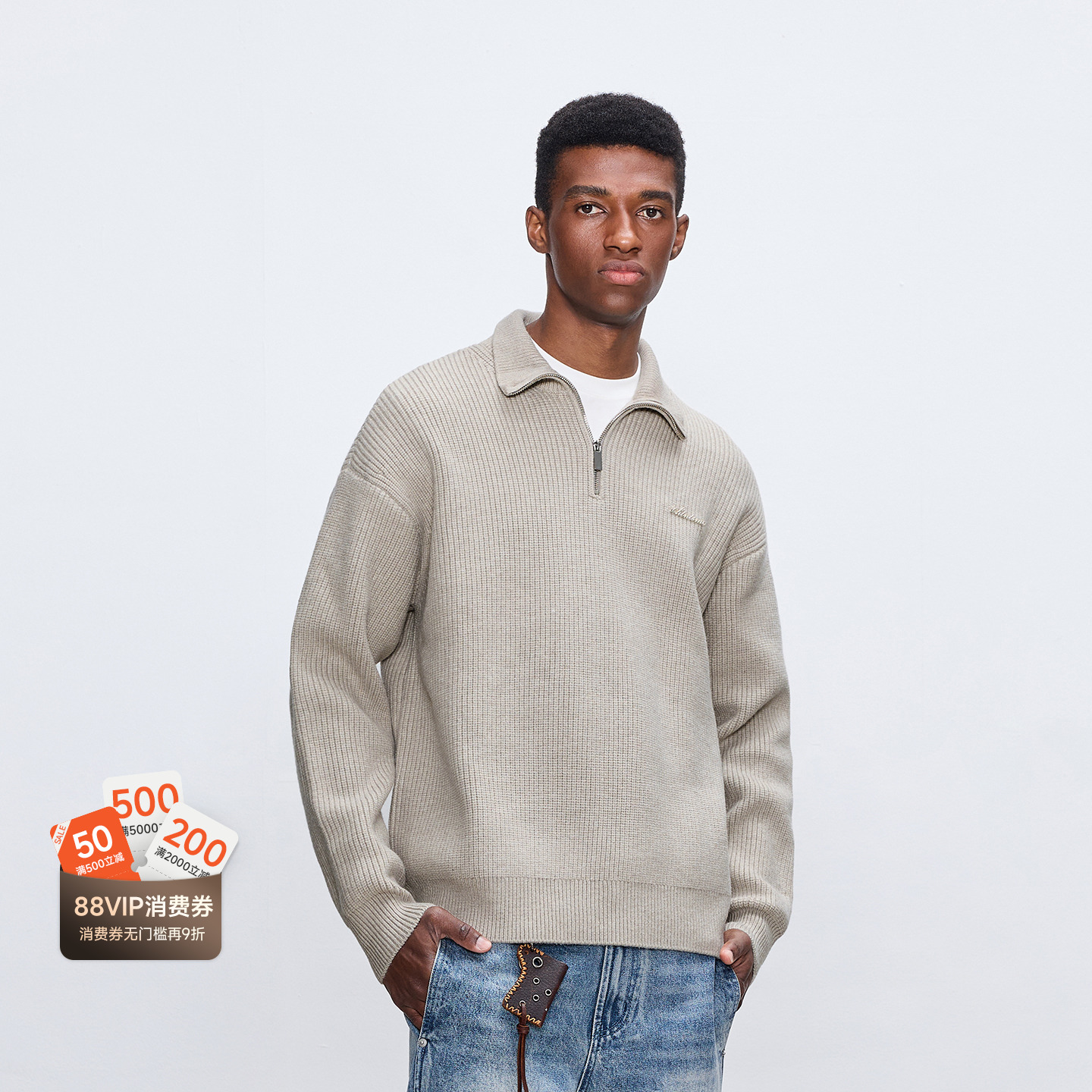 GTAL美式加厚半拉链毛衣抗起球纯色立领套头休闲针织保暖长袖外套