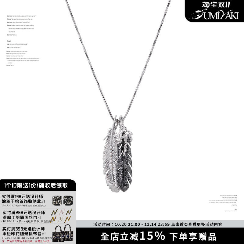 【明星同款】SUMIYAKI羽毛黑白叠戴项链毛衣链长项链情侣通勤百搭