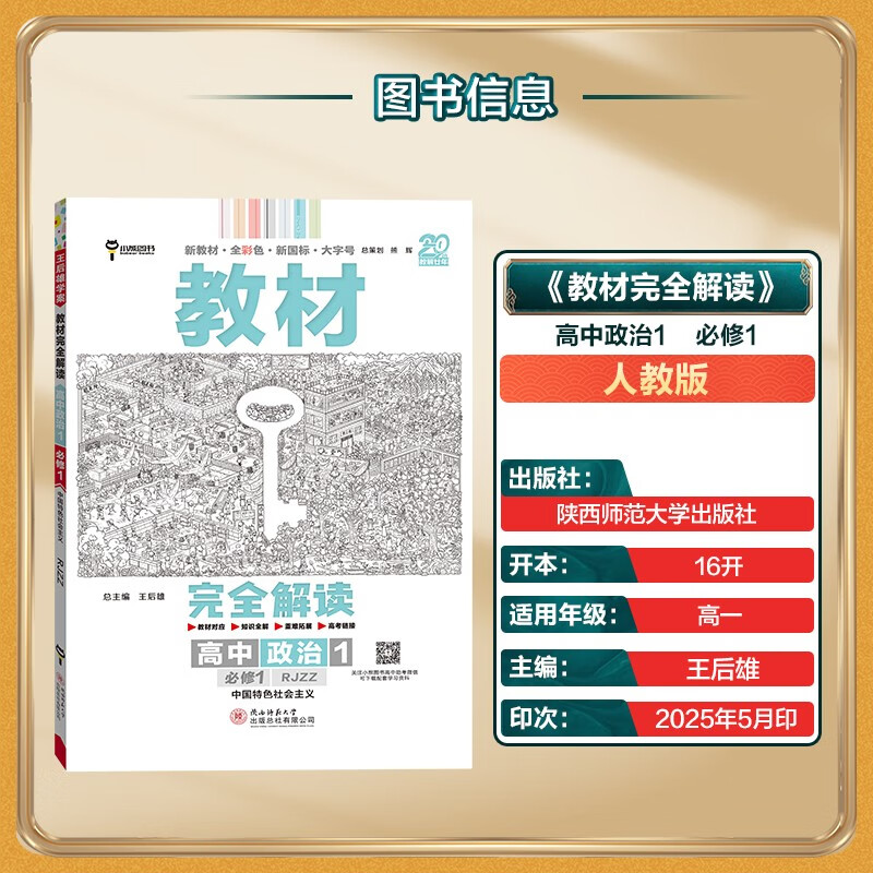 2026适用 王后雄学案教材完全解读高中政治必修一人教版 中国特色社会主义高1上册必修1同步辅导书预复习资料 凤凰新华书店正版