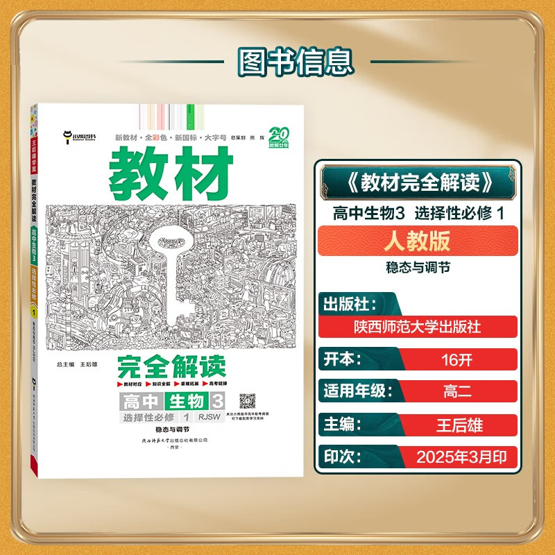 2025秋 王后雄学案教材完全解读高二生物选择性必修一人教版 高中生物选修1新教材高中辅导书复习资料练习册 凤凰新华书店旗舰店